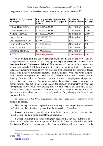 Wall Street Syndicate Participation in German in- Profits on Percent