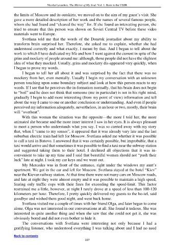 apartment. We got in the car and left for Moscow. Svetlana stayed at the hotel “Kiev”